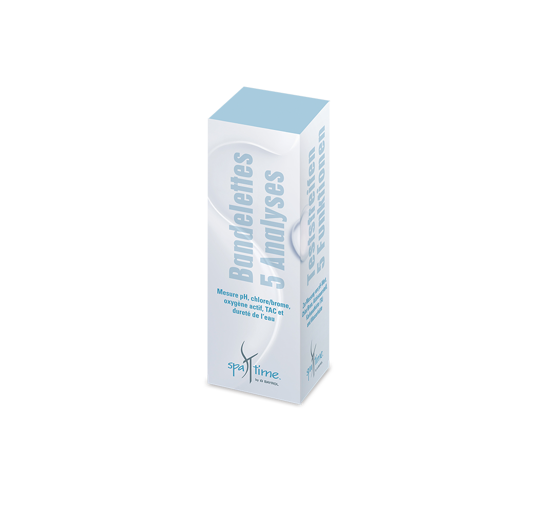 Les bandelettes 5 analyses SpaTime permettent de surveiller les paramètres de l’eau du spa.