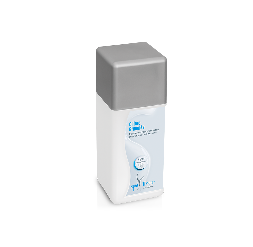 Les granulés de chlore SpaTime sont très concentrés en chlore actif. Au contact de l’eau, ils se dissolvent rapidement et agissent immédiatement contre les bactéries, les turbidités et les impuretés.