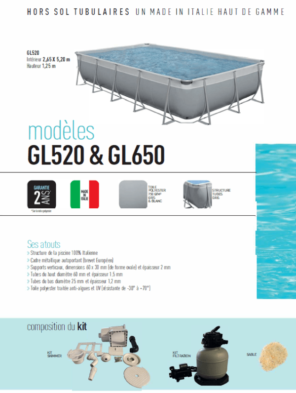 2,65 x 5,20 – Made in Italie – Haut de gamme – GL520 Garden Leisure